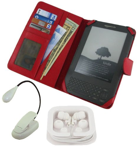 rooCase 3n1 Folio (Red) Leather Case with LED Clip-On Book Light and Earbud for Amazon Kindle Wireless Reading Device with 6" Display 3G + Wi-Fi (3rd Generation and Latest Generation) Review