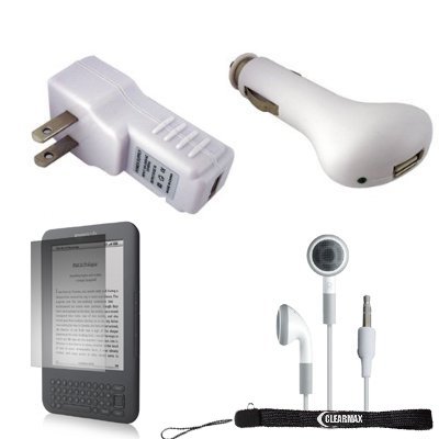 USB Car Charger, USB Wall / Travel Charger, Earphones, and Screen Protector / Guard For Kindle Wireless Reading Device, Wi-Fi, 6" Display Latest Generation + Including Carrying Strap Review