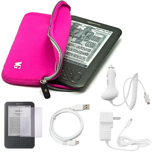 Durable Protective Neoprene Glove Sleeve Cover Carrying Case for Amazon Kindle 3 Wifi 3G 6 inch LCD Display Screen + Clear Screen Protector for Amazon Kindle Wireless Device 3G Wifi + Rapid Travel Wall Charger with IC Chip + Rapid Car Charger with IC Chip + SumacLife TM Wisdom Courage Wristband Review
