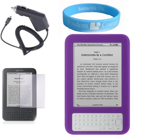 Latest Generation Kindle Combo: New Purple Silicone Skin for new kindle 3 Kindle Wireless Reading Device 3G Wi-Fi 6" Display, Graphite - Latest Generation + Kindle 6 Inch Srcreen Protector + Car Charger for Kindle3 + Cloth Review